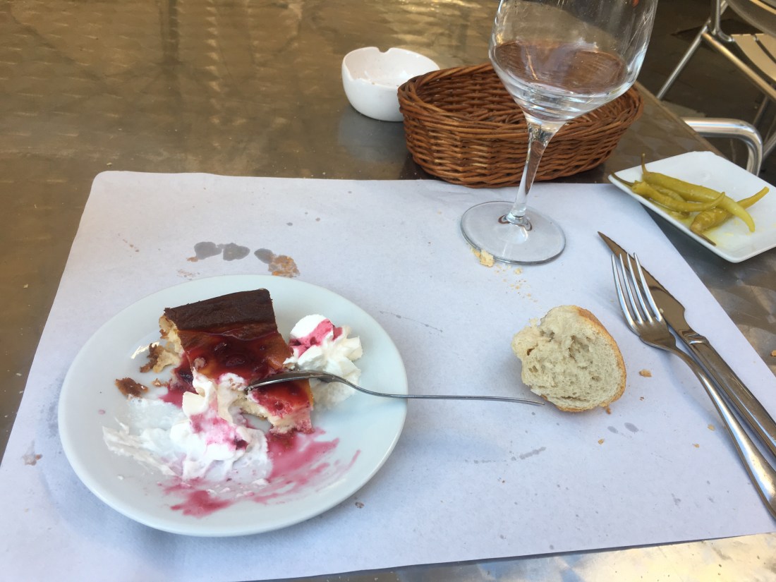 I met Eddie and the others at the cafe around 7. Had apple tart and cafe con leche.