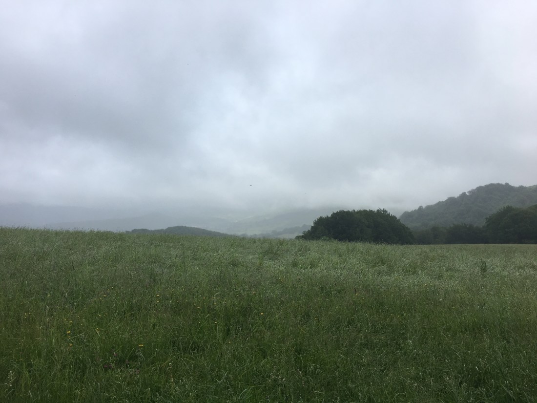 I delayed leaving a little so I could use the toilet, but now I have to again. There are no buildings in sight, so the woods it is. Fortunately I have a plastic bag and tissues. About 30 min later I come upon a restaurant. Eddie and his wife are there, as well as their friends. I leave my pack with them and go inside to get a tortilla and coffee. On the way I am accosted by a very drunk local man, barely out of his teens. I can’t do anything because my hands are full, and I don’t know what I’d do anyway. I make it past and to Eddie’s table. His friends saw what happened and are indignant on my behalf. I don’t brave drunk guy again to use the toilet. Another mistake.