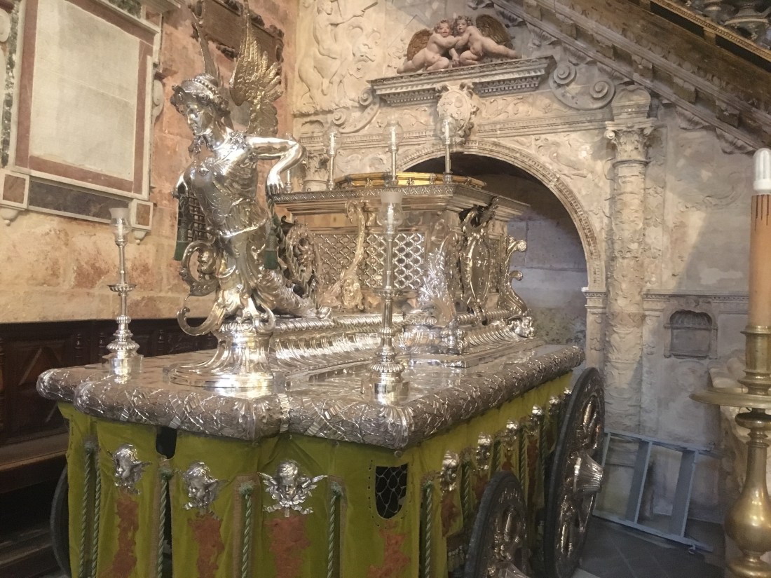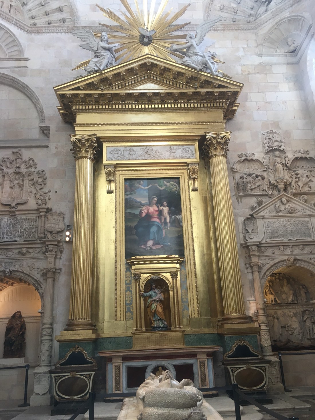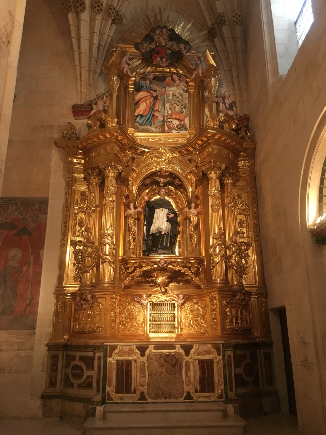 Instead I found Cindy, a high school teacher from California. She was going to tour the cathedral, so I went along. I only had my water bottle, so I left it in Elizabeth’s locker. She is also a pilgrim I met. Now I’m done and I’m praying the locker is still locked by her because she hasn’t come out yet. Hopefully she soon will.