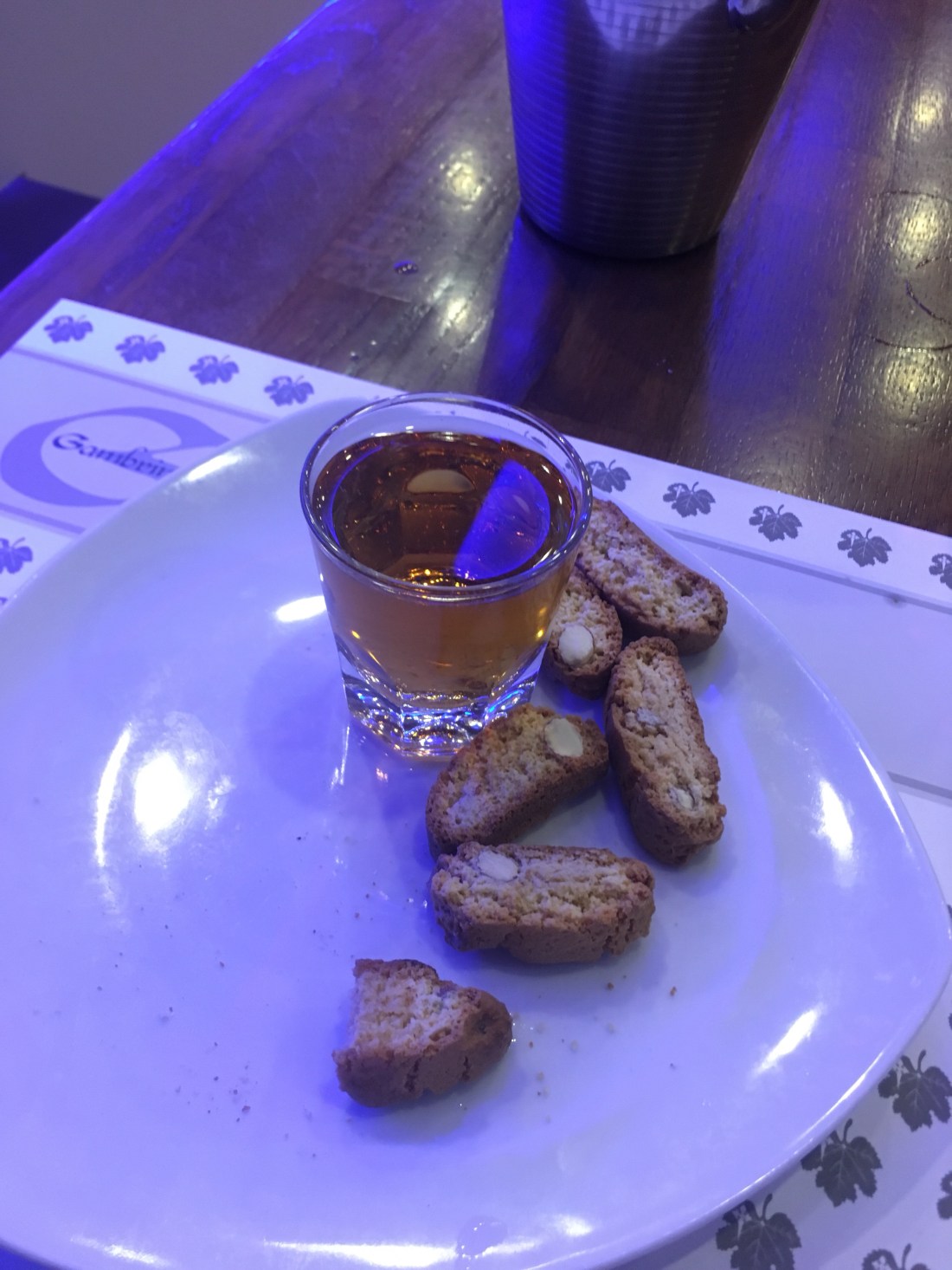 I haven’t eaten since noon, and it’s almost 9 by the time the mass ends. I send a message to Beverly, but end up wandering the streets in search of food. I decide on an Italian place. I want the cookies dipped in wine they have for dessert.