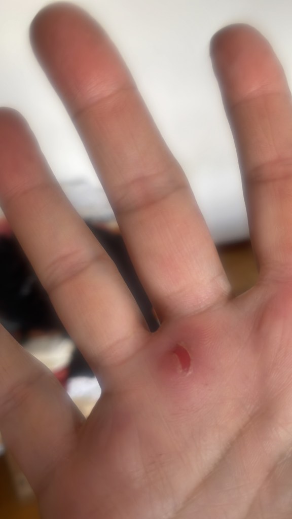 Today we worked in the garden. Probably not enough work but I got filthy dirty and blistered my hands even more.