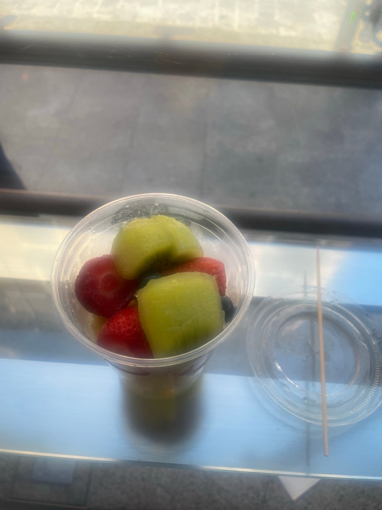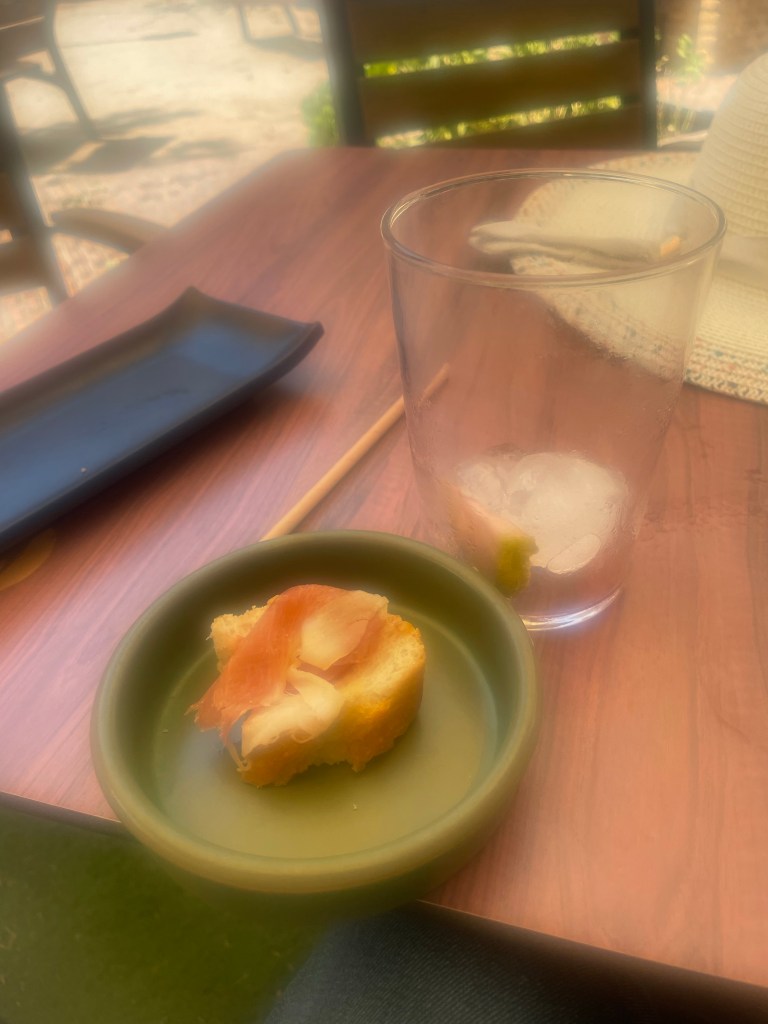 I ordered a glass of fruity white wine. I don’t know what the wine is when you do that, but omg, is it good.